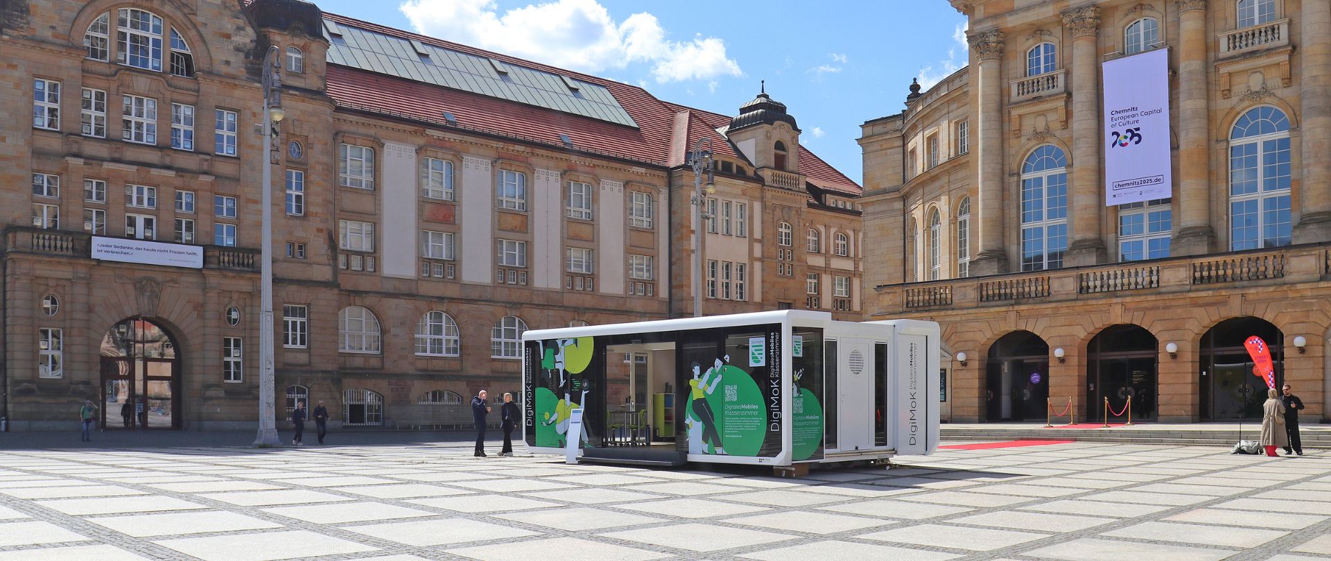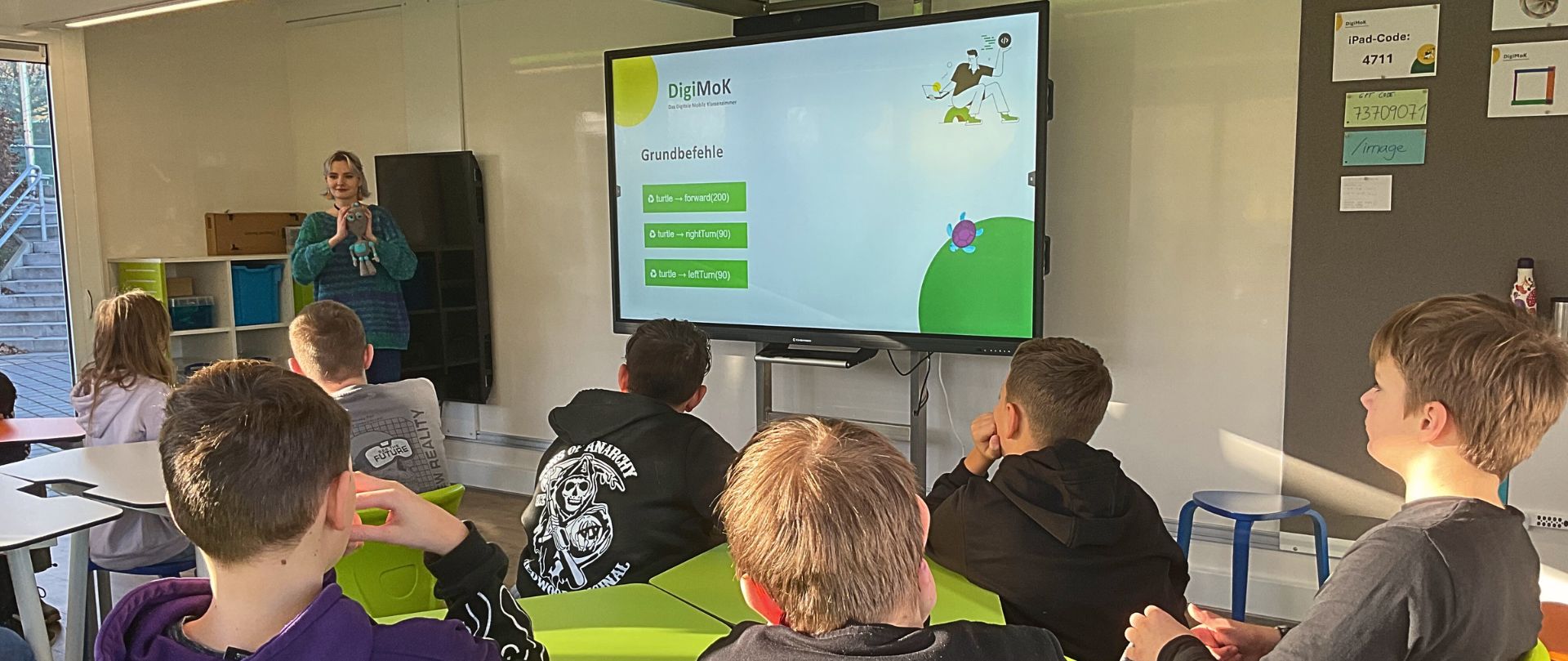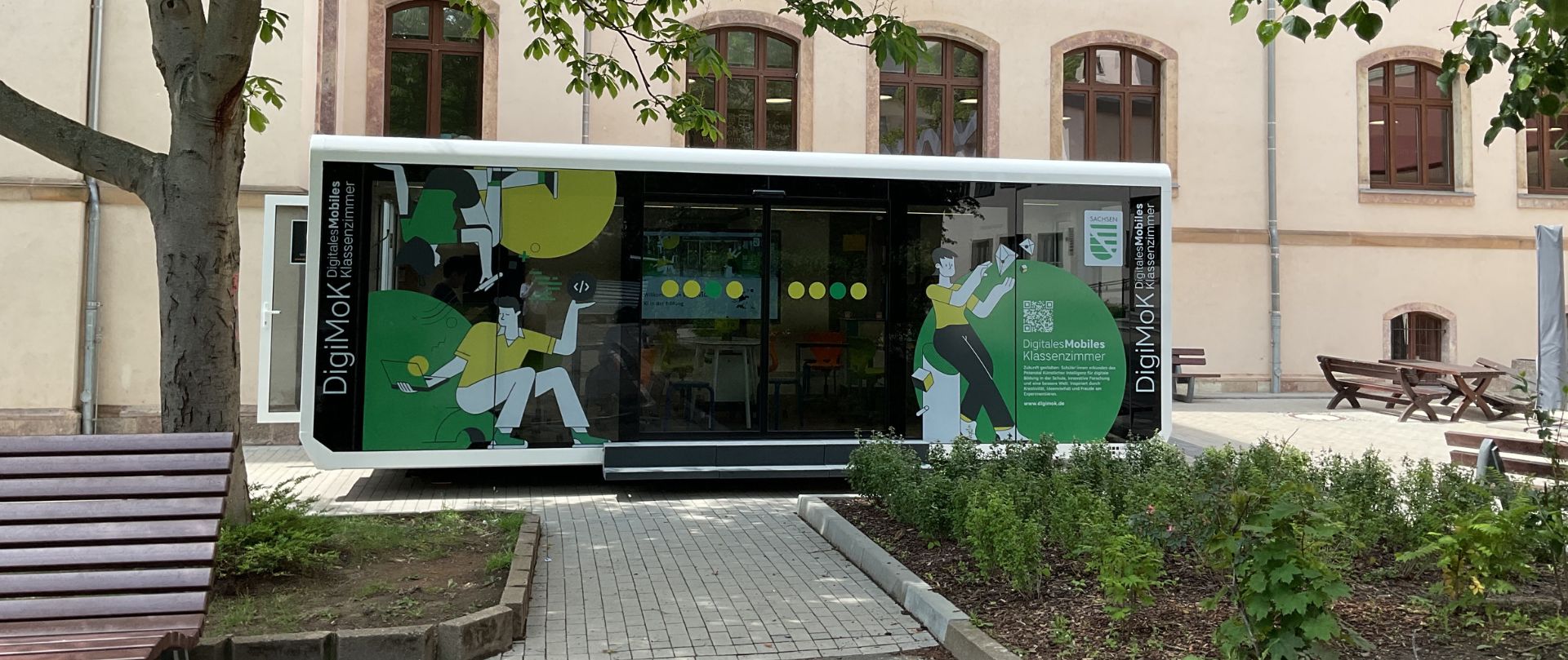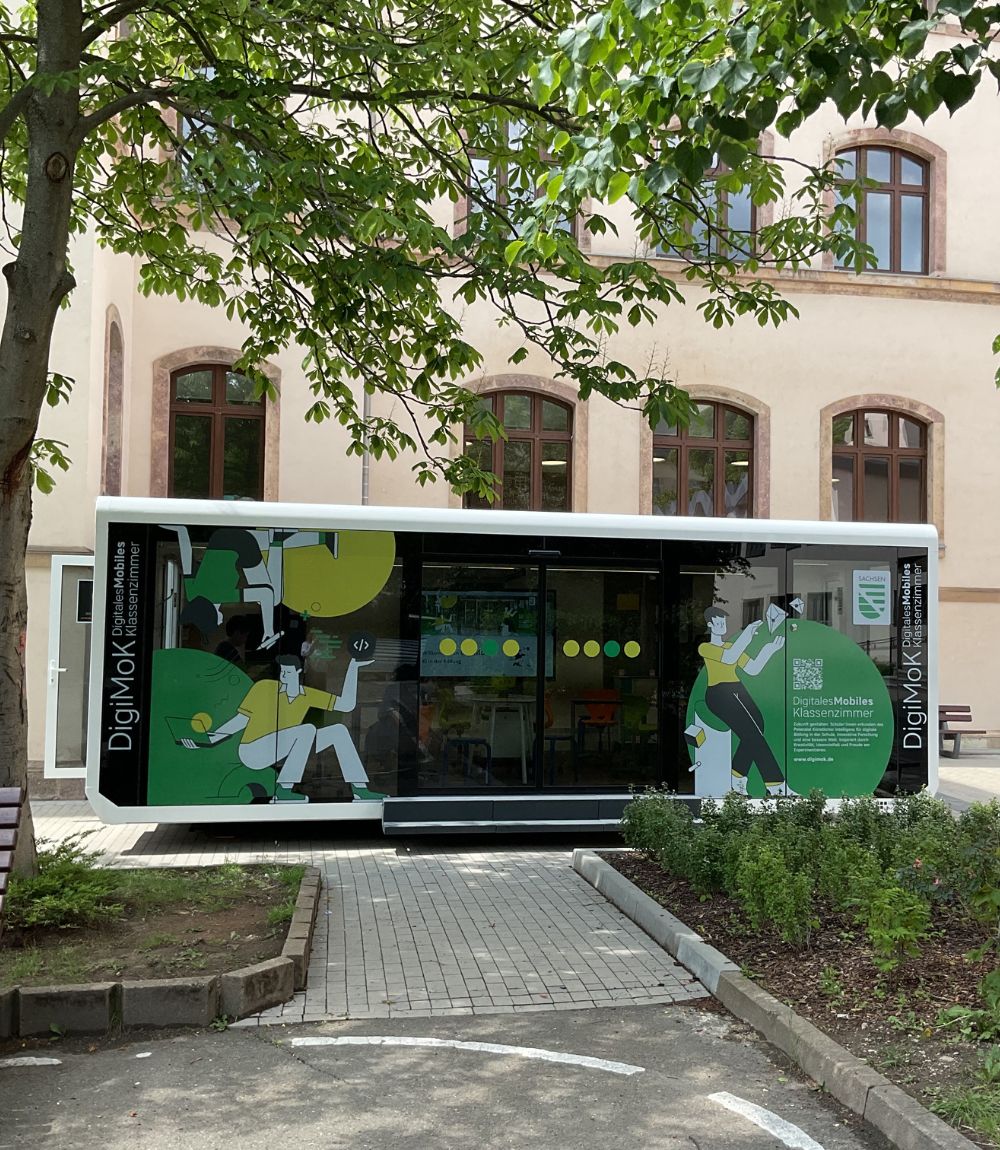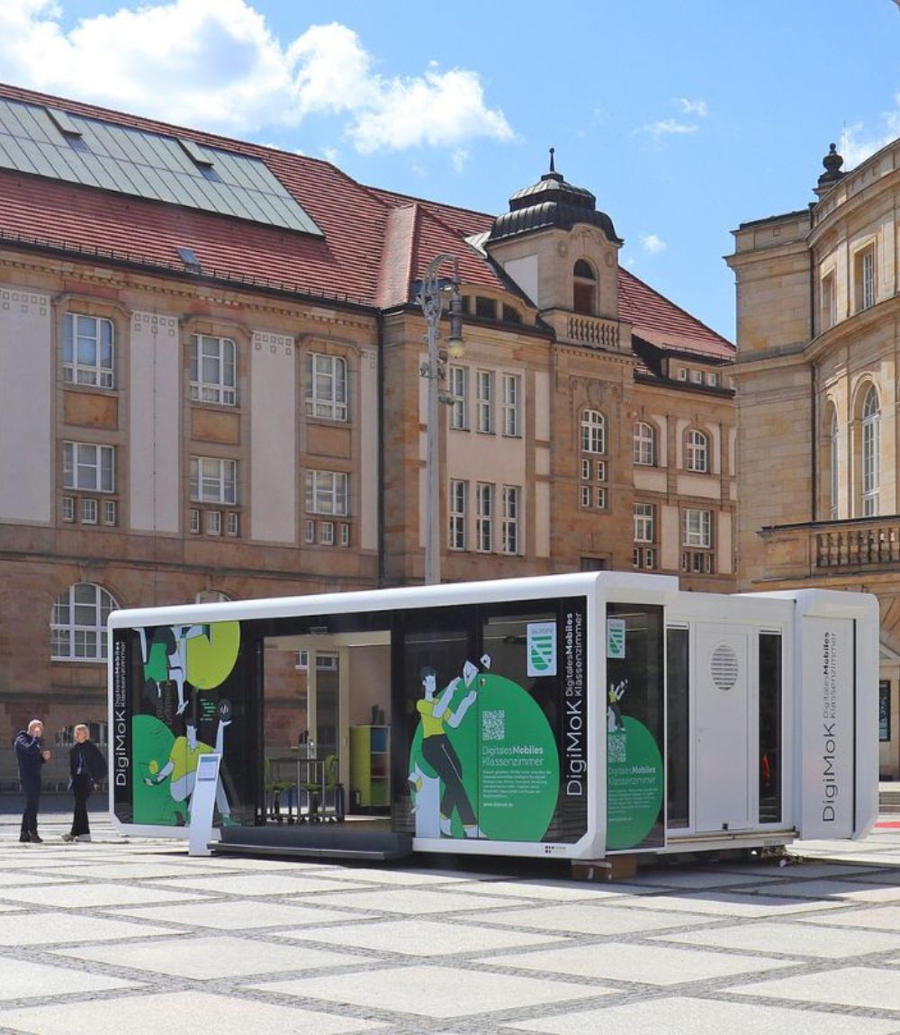 Jede Woche wird das gläserne Klassenzimmer an einer Schule abgesetzt und macht digitale Bildung direkt vor Ort praktisch und erlebnisreich erfahrbar.