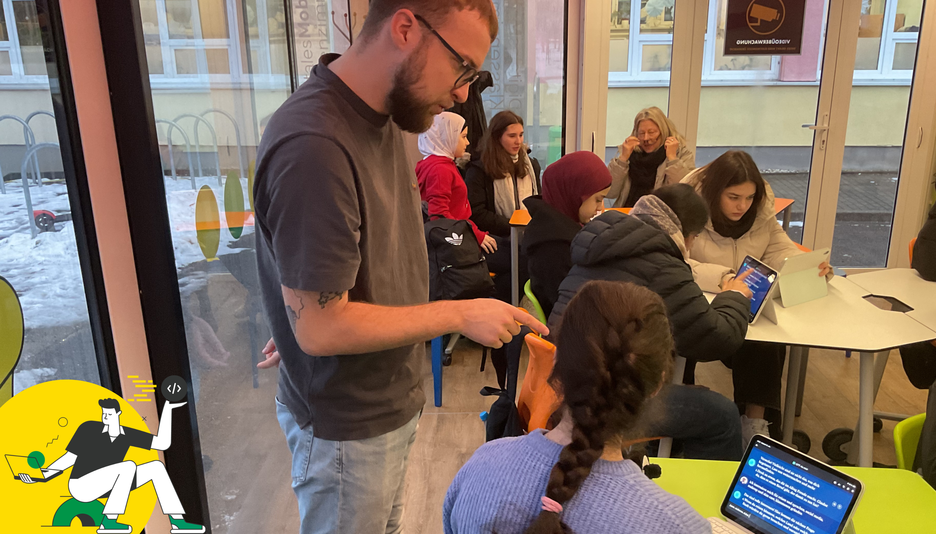 Vom 12.01. bis 16.01. machte das Digitale Mobile Klassenzimmer Station in Dresden. Eine intensive Workshopwoche stand auf dem Programm – begleitet von frostigen Temperaturen. Als es zwischendurch mal zu eisig wurde, zogen wir sogar kurzerhand ins Schulgebäude um. Flexibilität gehört beim mobilen Klassenzimmer eben dazu! Die digitalen Lehrkonzepte, die wir im Gepäck haben, stießen trotzdem jeden Tag auf großes Interesse und weckten bei den 8. bis 9. Klassen große Begeisterung und Kreativität.