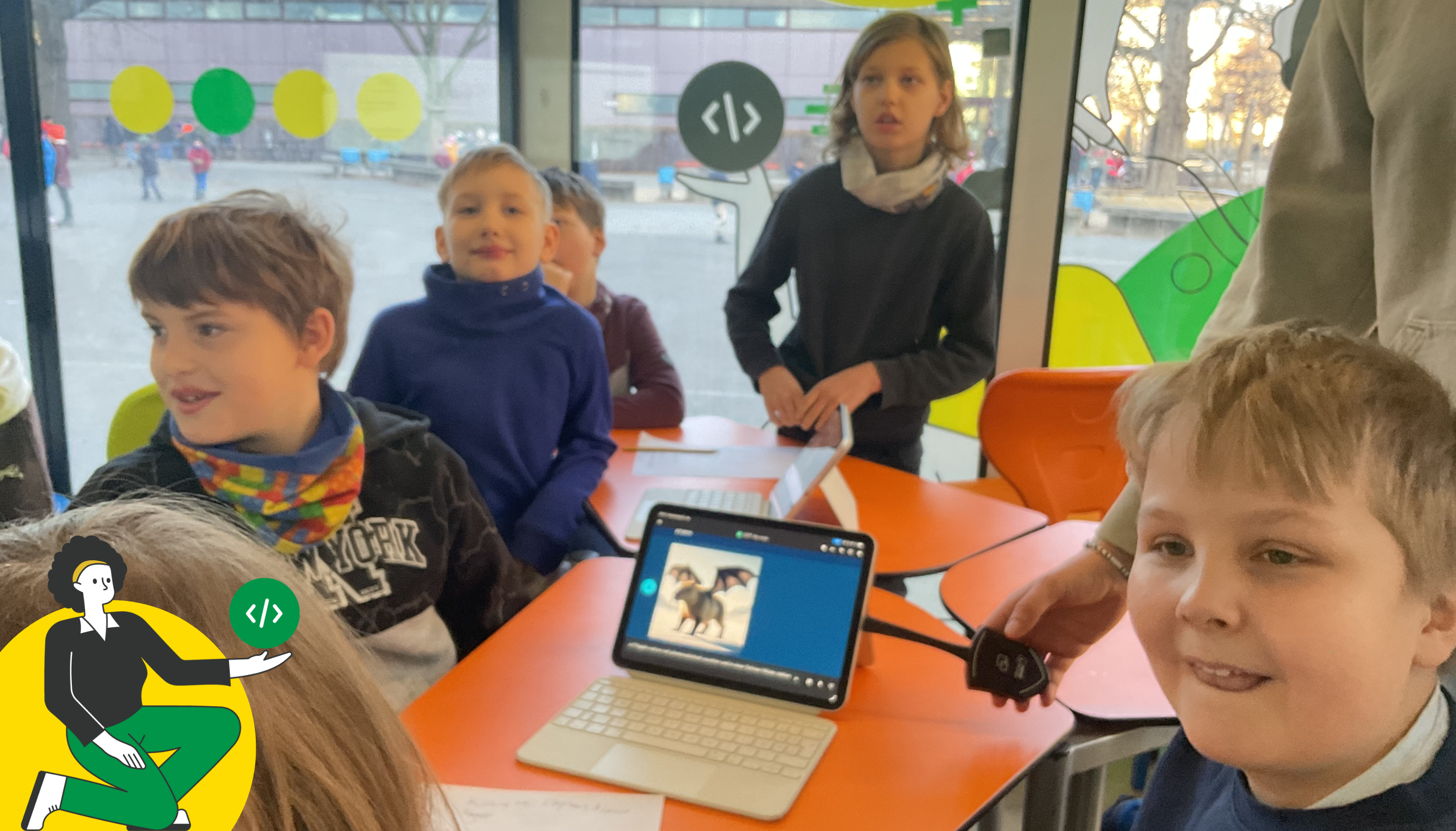 Im Workshop zur Künstlichen Intelligenz entdecken die Schülerinnen und Schüler spielerisch, wie KI funktioniert und wie man durch gezieltes Prompten eigene Ideen umsetzen kann. Dabei lernen sie, in einen Dialog mit der KI zu treten: Sie passen ihre Eingaben an, reagieren auf die Ergebnisse und steuern so den kreativen Prozess aktiv mit. Im Mittelpunkt steht die eigene Kreativität. Durch Ausprobieren und Vergleichen entstehen individuelle Fantasietiere – und die Schülerinnen und Schüler gewinnen gleichzeitig ein Gespür für einen bewussten und reflektierten Umgang mit Künstlicher Intelligenz.