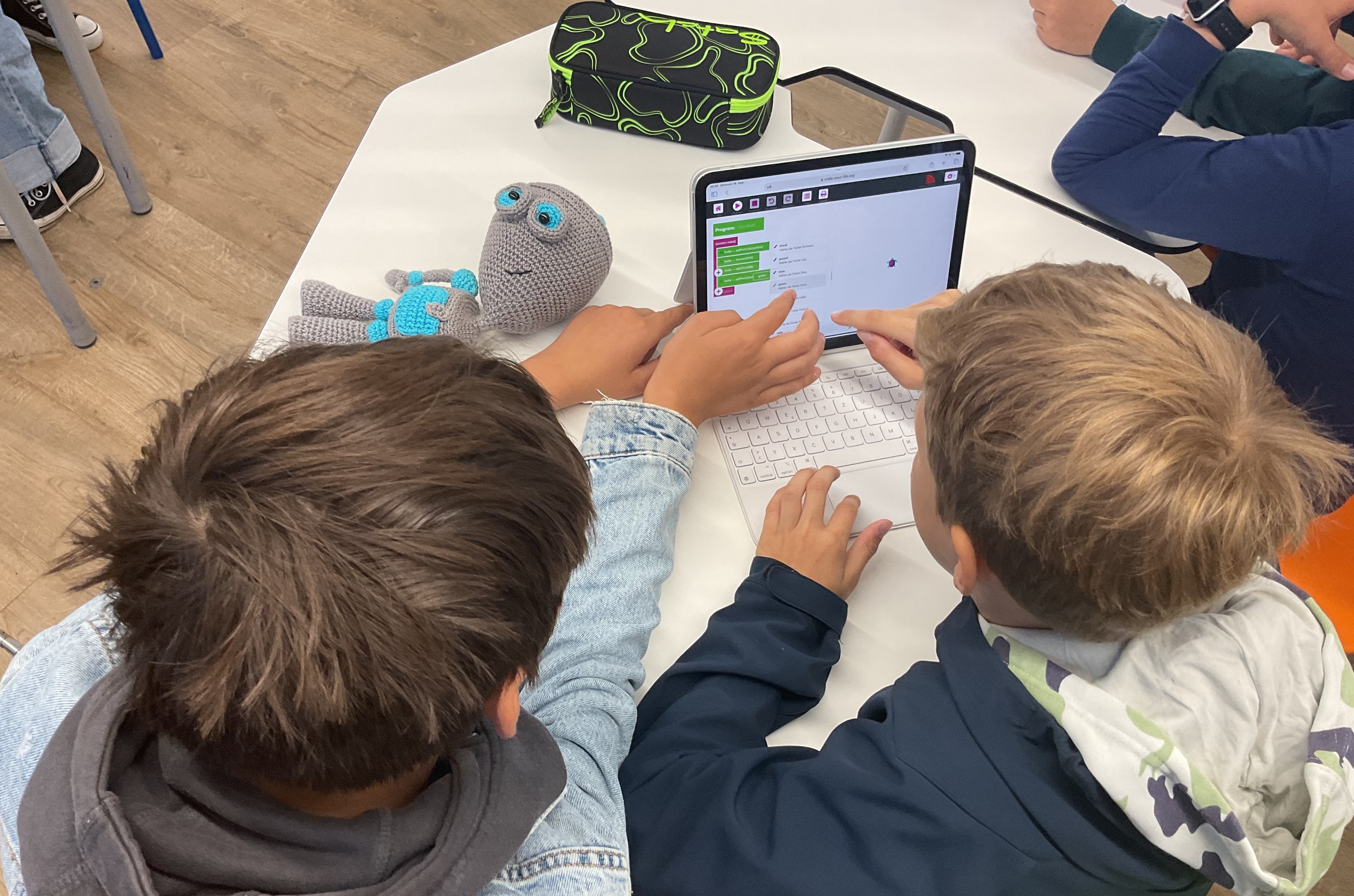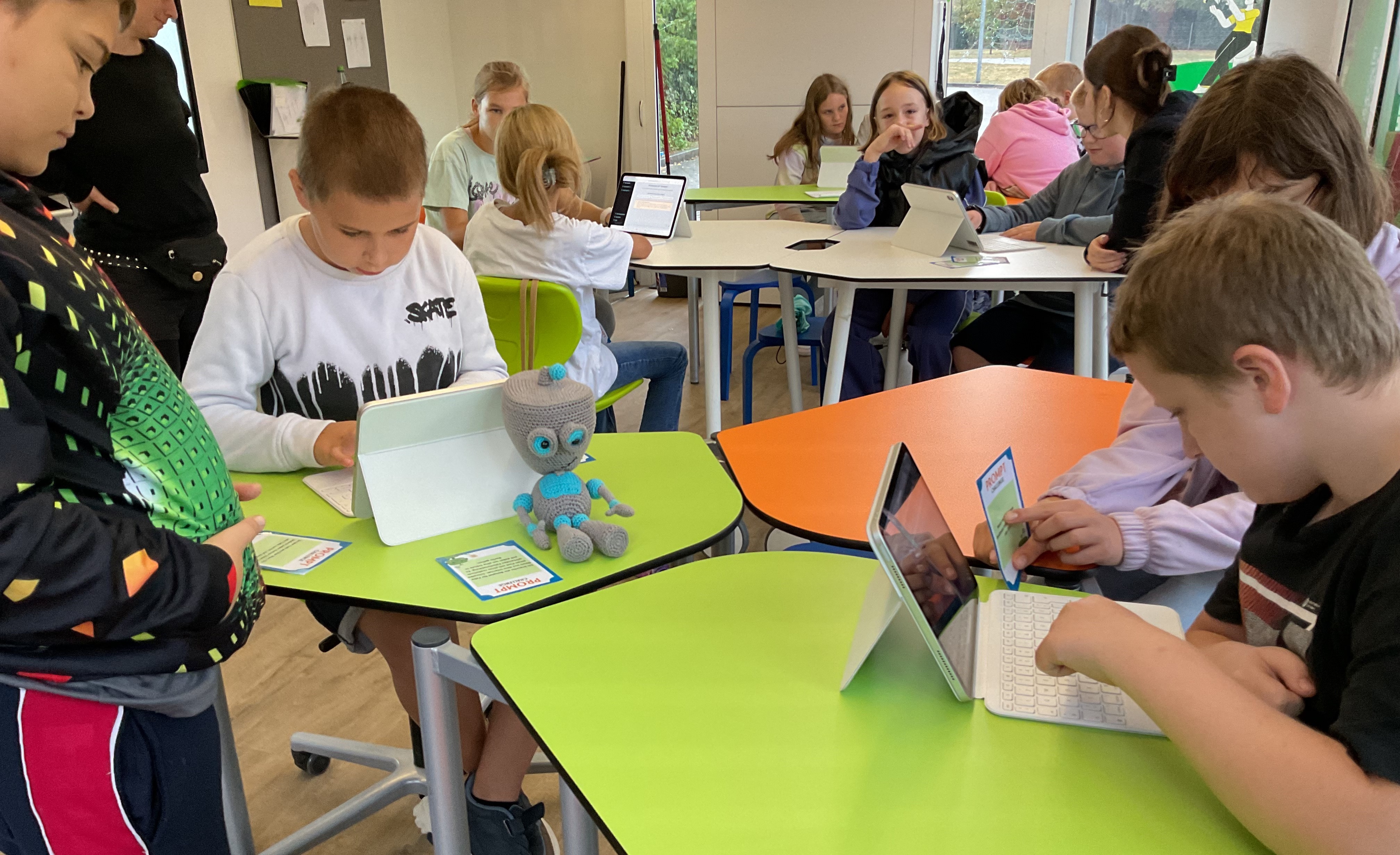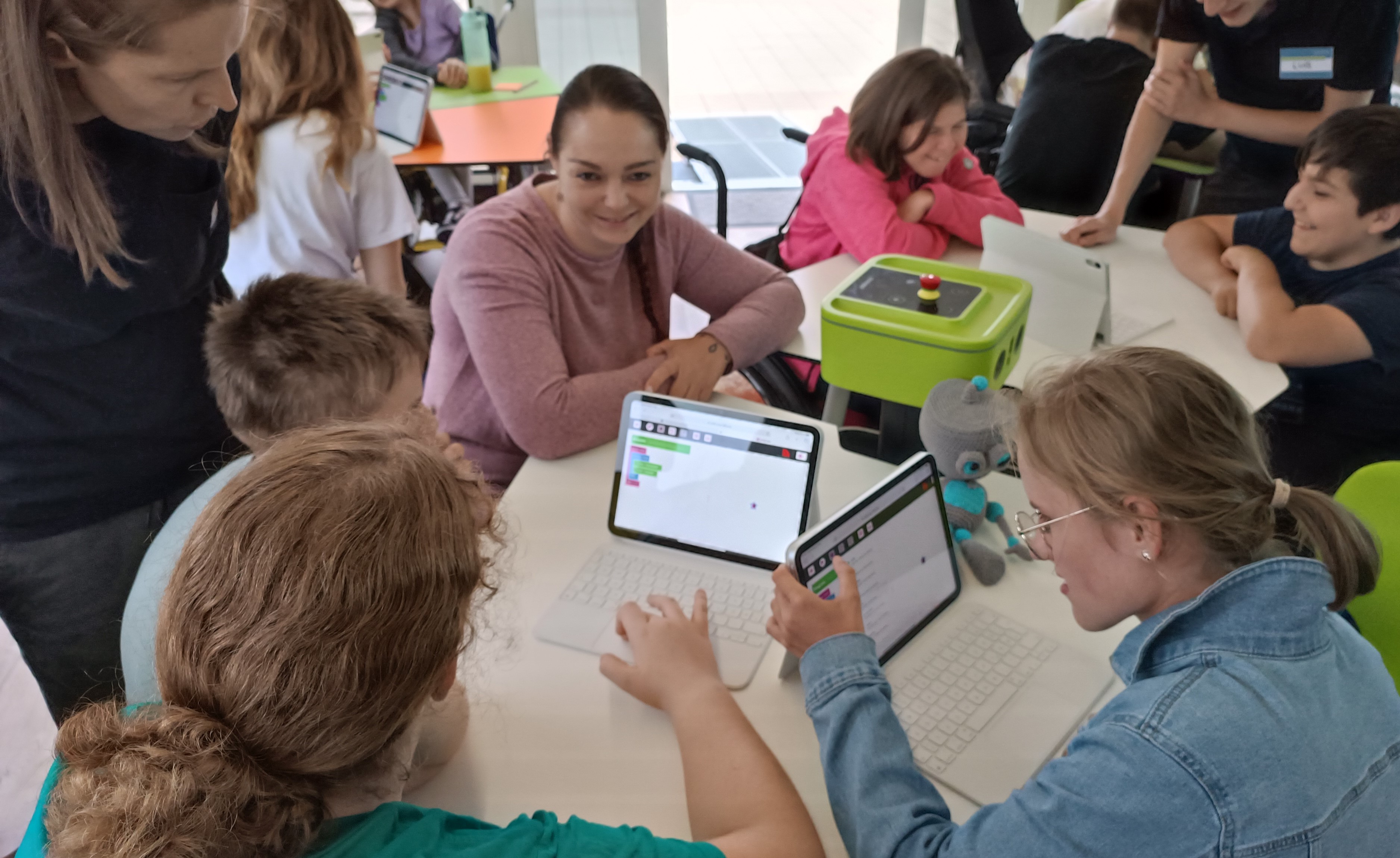 In diesem Abschnitt sehen Sie Pixel in Aktion! Er ist ein wichtiger Teil unserer Workshops, sei es beim Turtle Coder, wo er die Schülerinnen und Schüler bei Offline-Übungen des Programmierens begleitet, oder wenn er neugierig über die Schulter schaut, während die Kinder mit verschiedenen KIs arbeiten. Zusätzlich stellen wir Pixel auf unserer Website vor und freuen uns, ihn bei verschiedenen Veranstaltungen mit unserem digitalen, mobilen Klassenzimmer dabei zu haben!