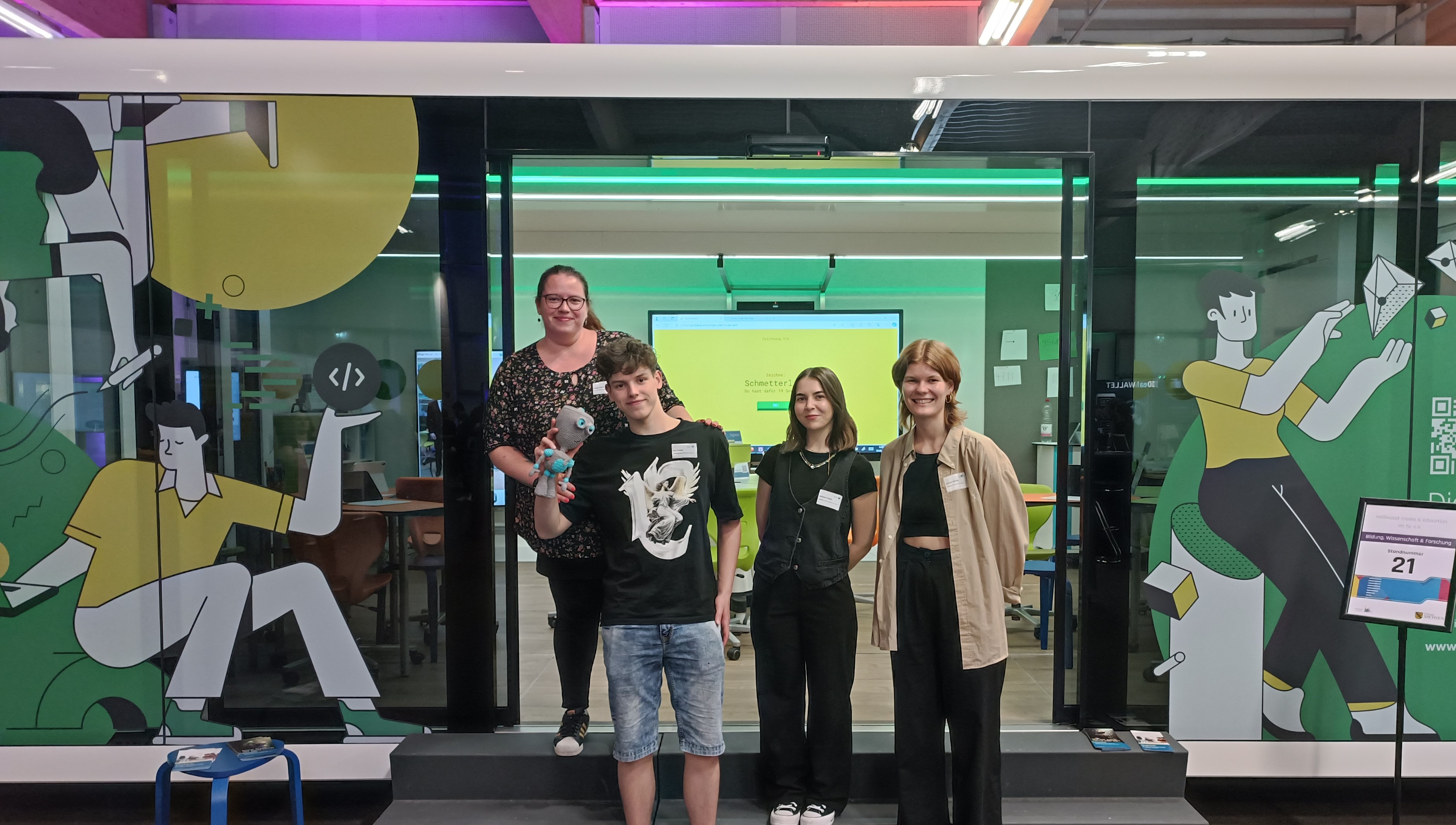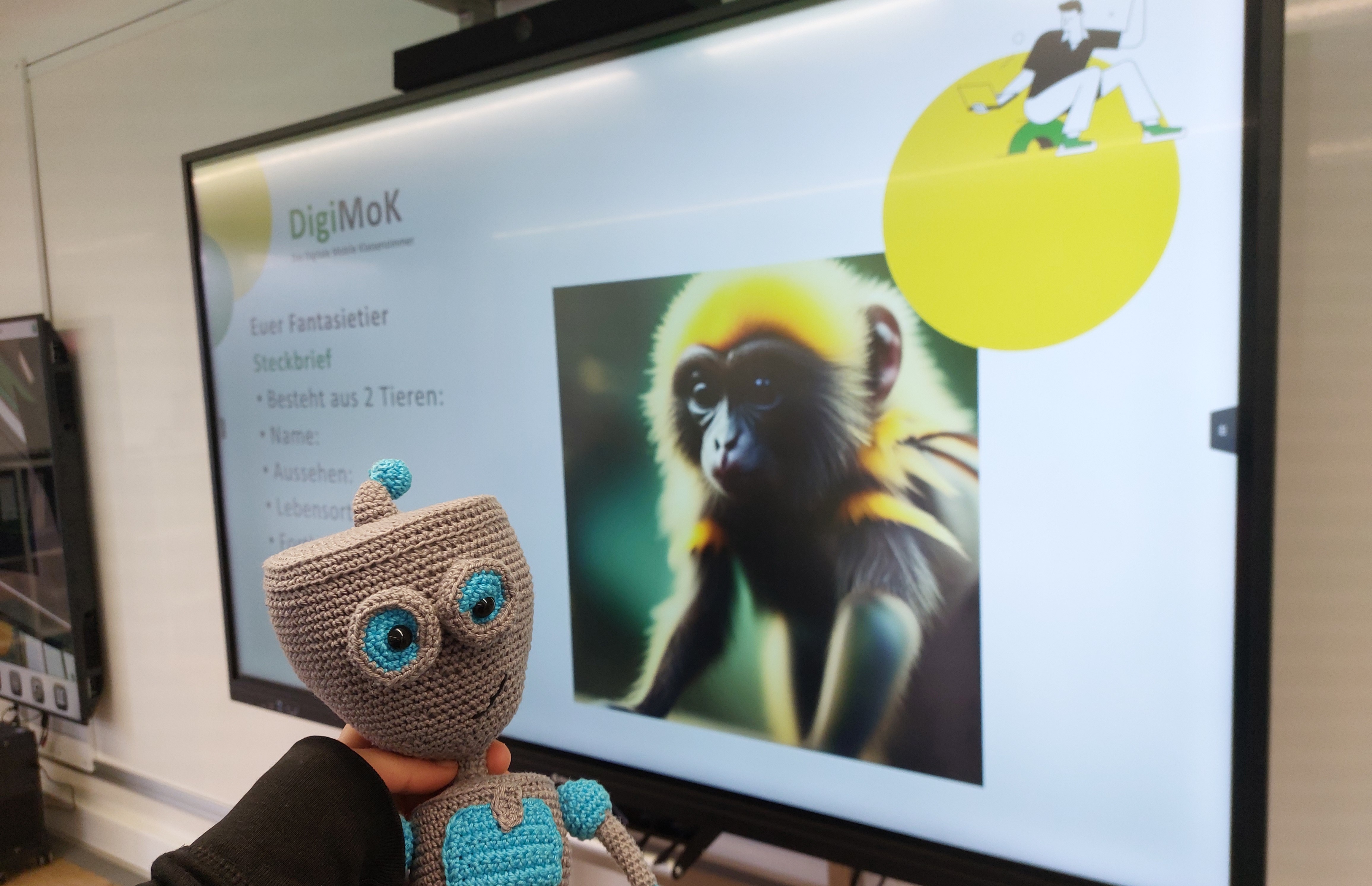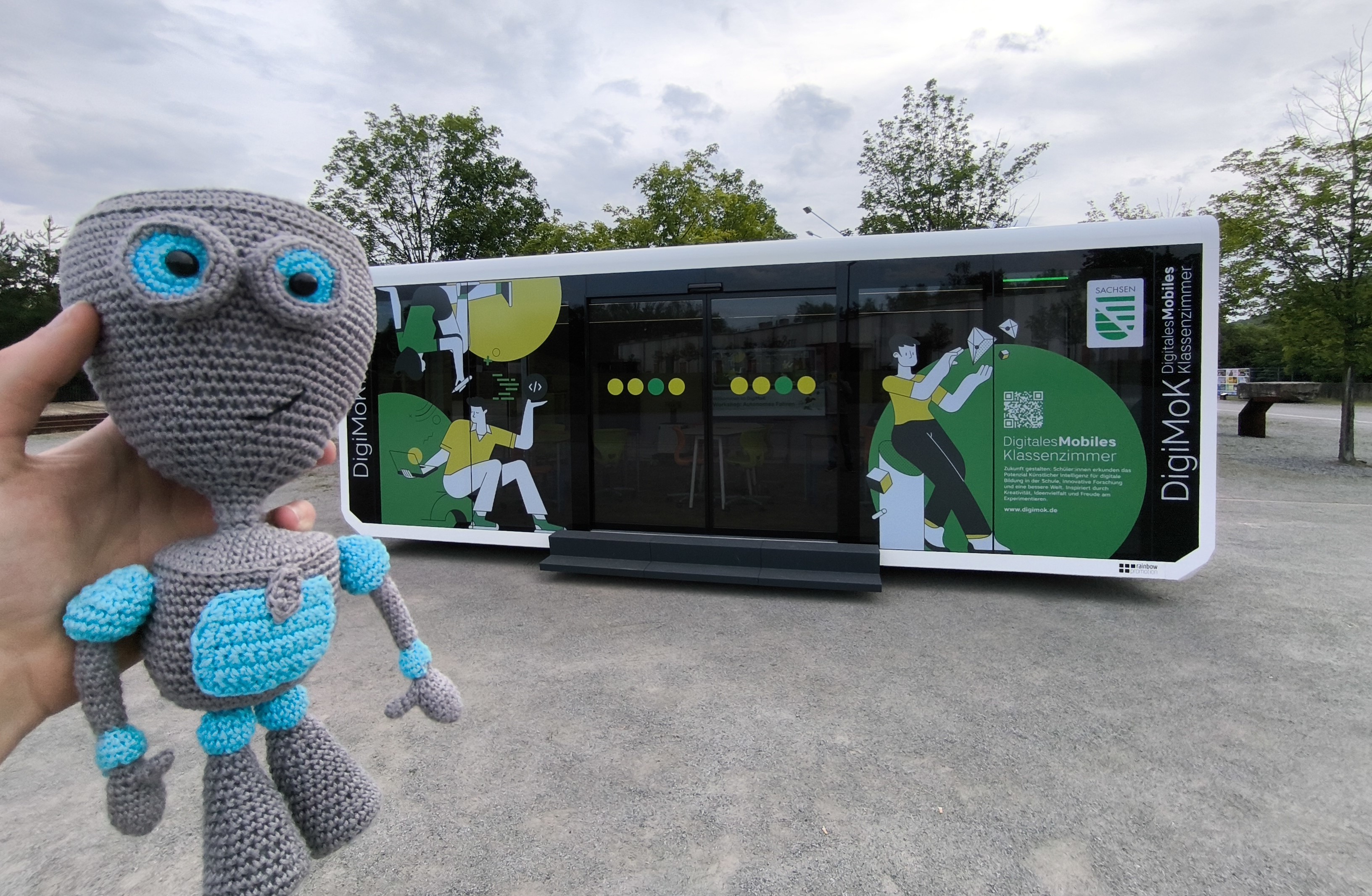 Bei einem unserer Workshops kam uns eine ganz wunderbare Idee. Wir dachten uns, es wäre doch schön, ein Maskottchen für das DigiMoK zu erschaffen, das uns auf unserer Tour durch Sachsen und in den Workshops begleiten könnte.