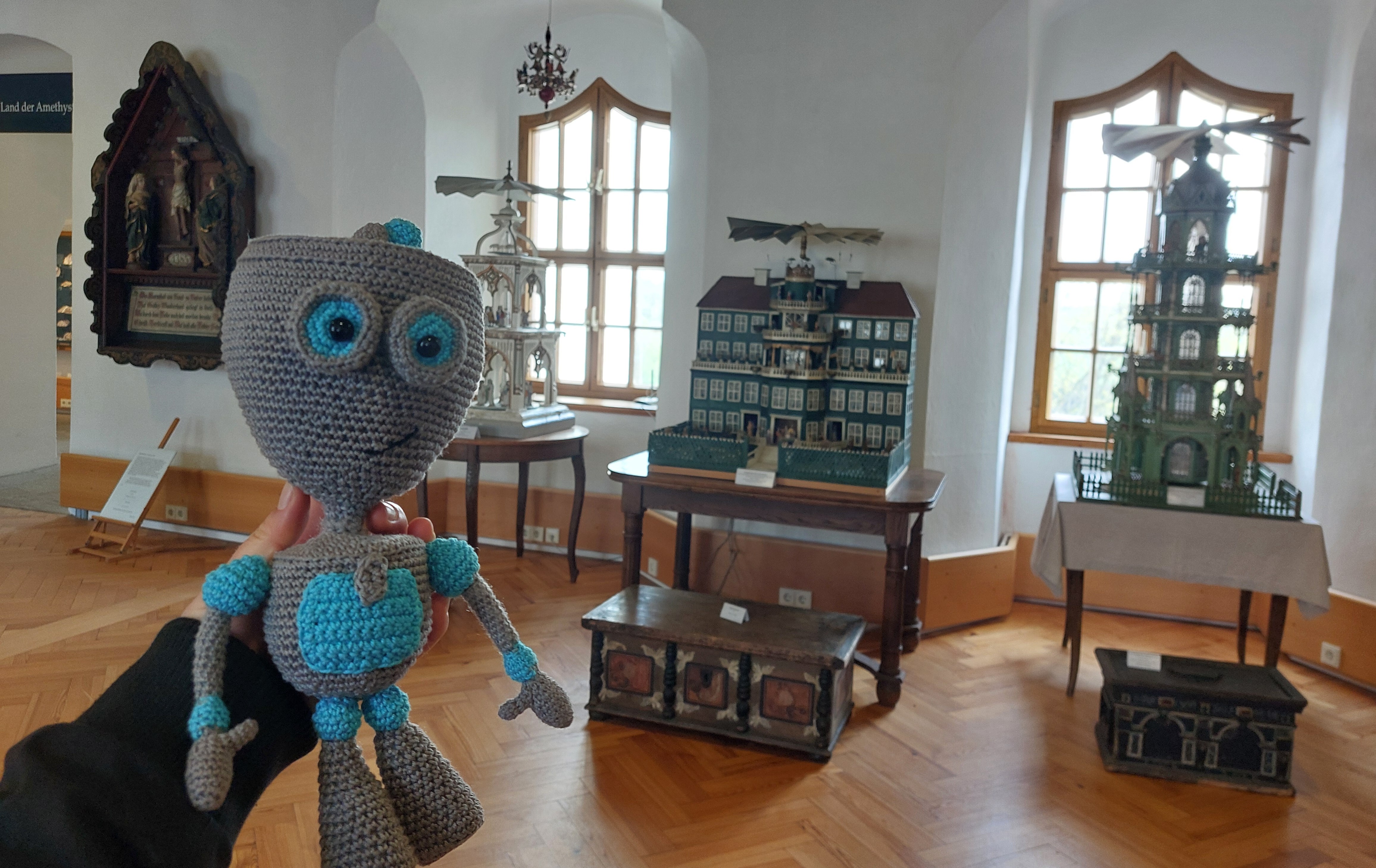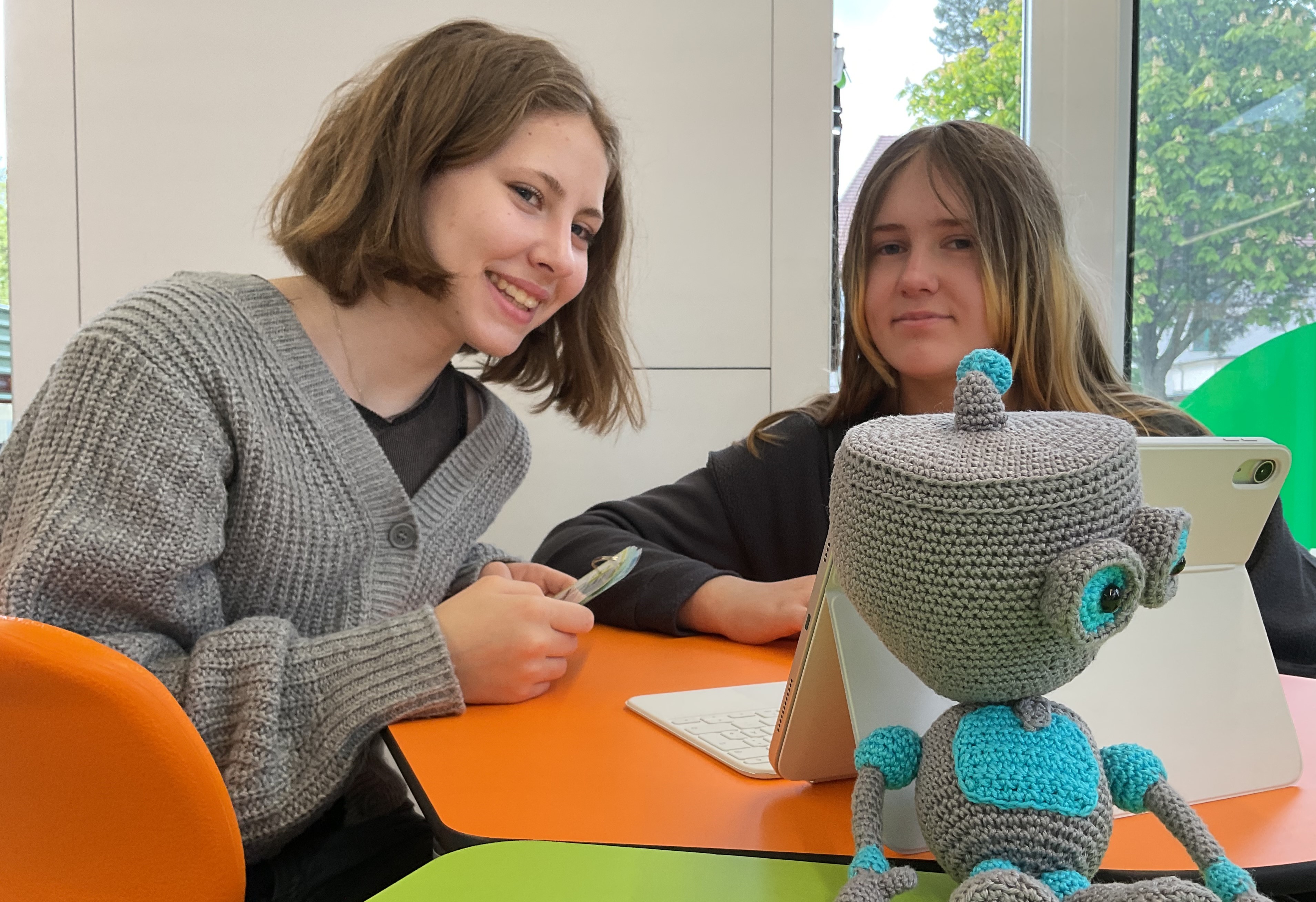 Unser gehäkelter Roboter und digitales Maskottchen!