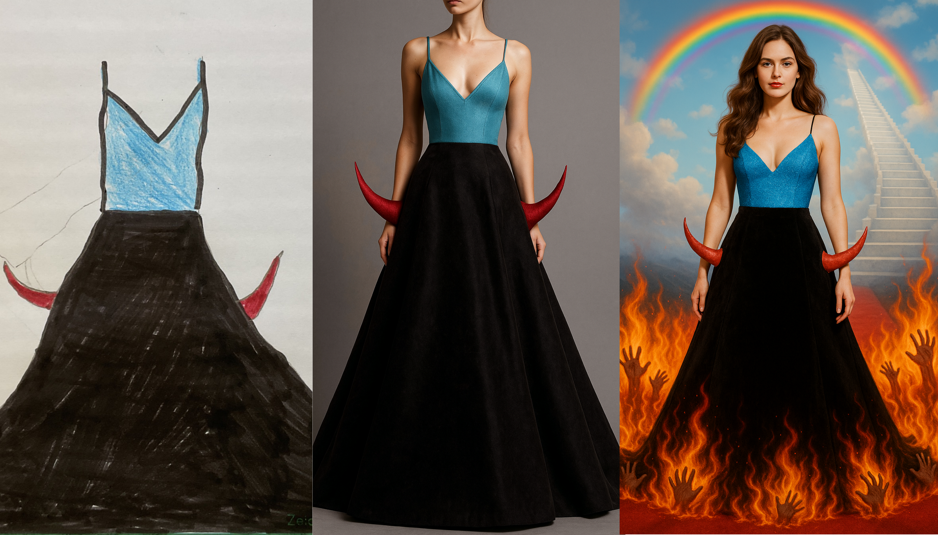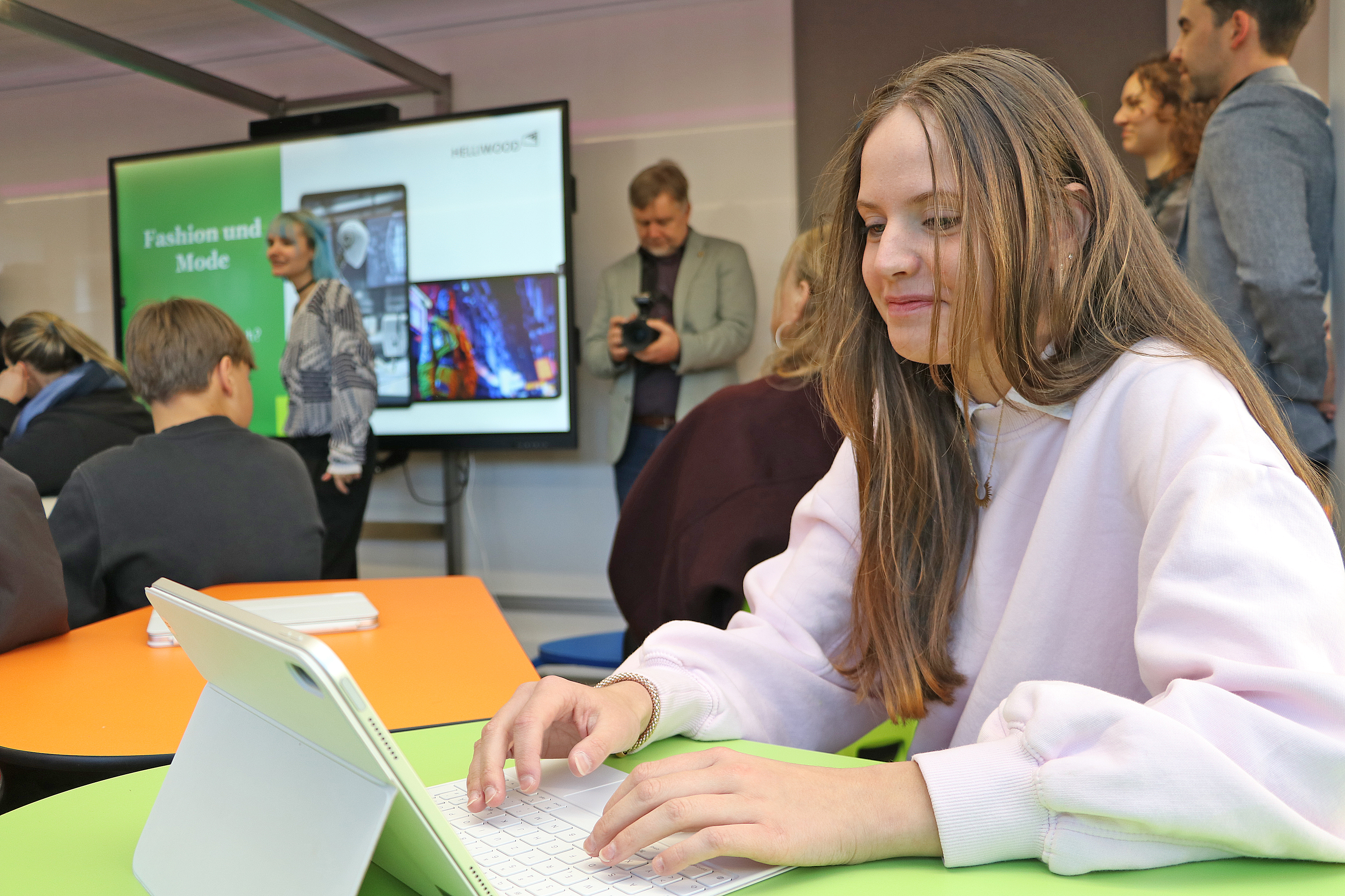 In den Workshops gestalten Chemnitzer Schülerinnen und Schüler einen kreativen Prozess, der analoge und digitale Welten verbindet: Handgezeichnete Modedesigns werden digitalisiert und mithilfe von KI zum Leben erweckt. Die Teilnehmenden prompten ihre virtuellen Models und generieren ein finales Ergebnis, das ihre Kreationen in einer digitalen Modenschau inszeniert.